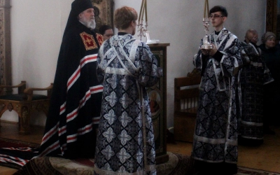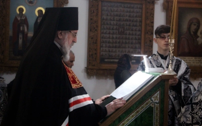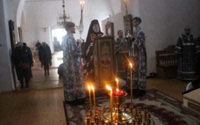 Вечером 8 марта, епископ Сергий возглавил служение Великого повечерия с чтением второй части Великого покаянного канона преподобного Андрея Критского.