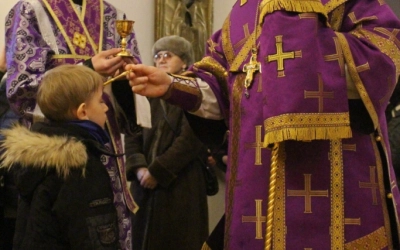 Песнопения праздничного богослужения звучали в исполнении хора кафедрального собора-регент Елена Платонова.
