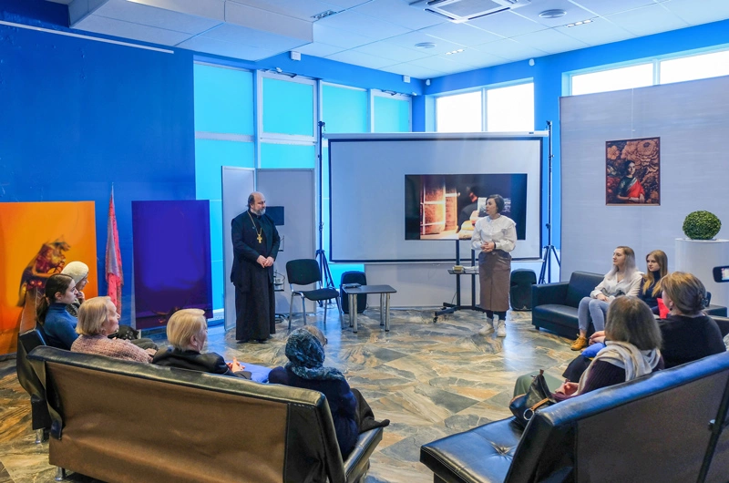 В начале встречи присутствующие посмотрели видеоролик, повествующий об истории книгопечатания в России и о первом печатнике - дьяконе Иване Федорове, Священном Писании. Затем каждый из участников встречи рассказал о своих литературных предпочтениях, любимых героях книг, сравнивая произведения авторов с кинематографическими интерпритациями. В тесном кругу собеседников обсуждались темы добра и зла, вечной жизни, патриотизма, творчества, саморазвития.
