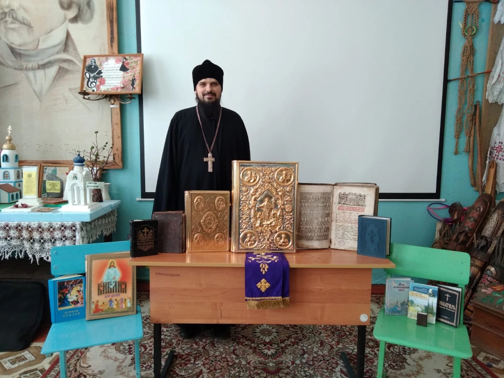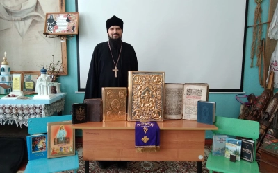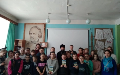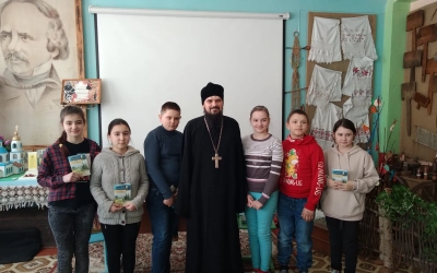 17 марта в средней общеобразовательной школе д. Исаково прошла встреча учащихся с благочинным Угранского округа иереем Александром Курмелевым. Батюшка рассказал ребятам о церковных и богослужебных книгах, об истории возникновения книгопечатания на Руси, а также предложил почитать тексты на церковно-славянском языке.