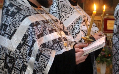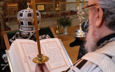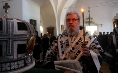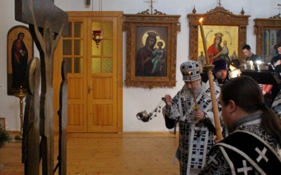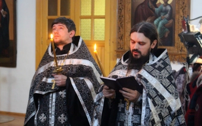 Епископу Сергию сослужило духовенство Троицкого собора.