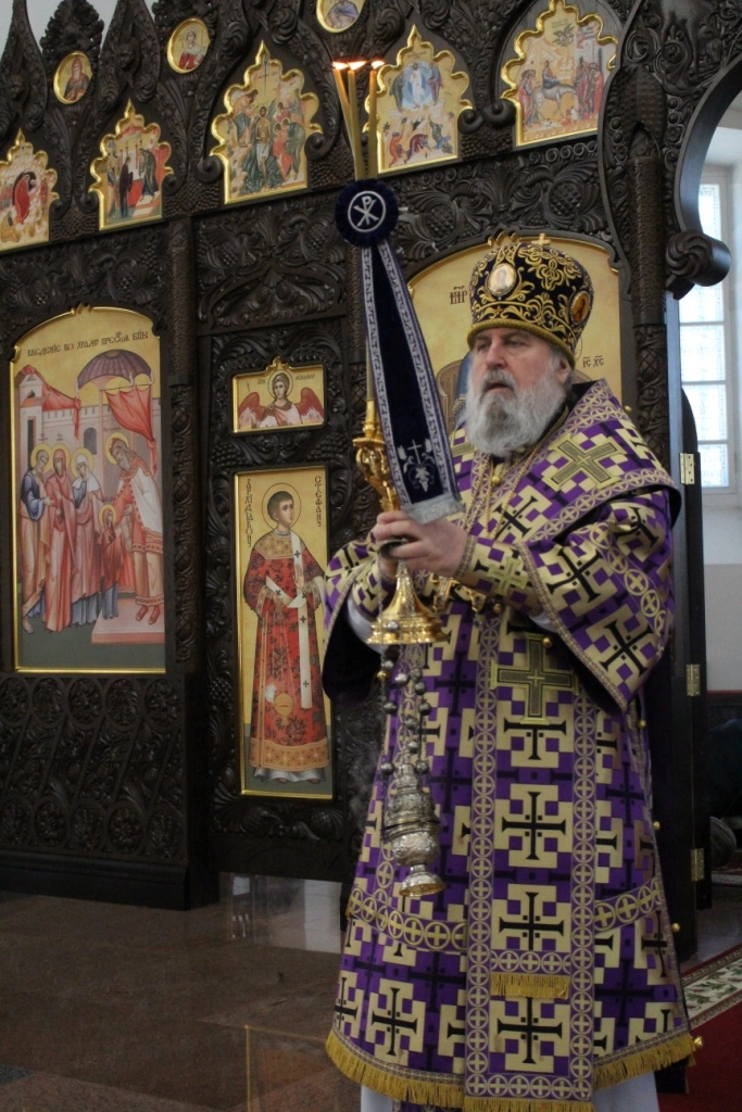 За богослужением после сугубой ектиньи преосвященнеший Сергий вознес молитву о мире.