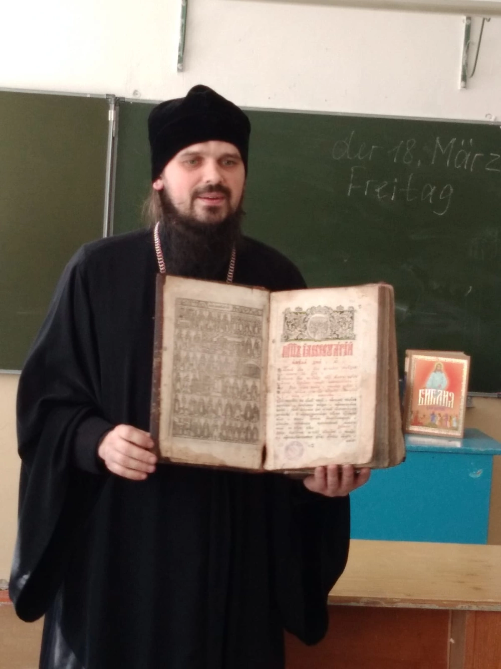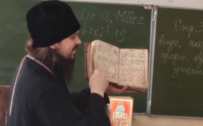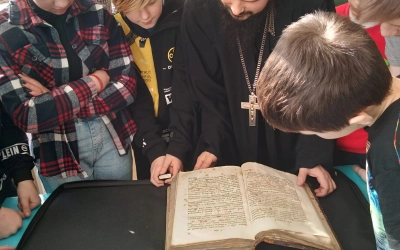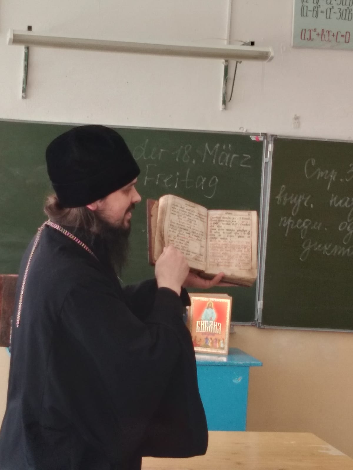 17 марта в школе с. Новое село прошло мероприятие, посвященное Дню православной книги. Благочинный Угранского округа иерей Александр Курмелев провел беседу с учащимися 6-го и 7-го классов о церковных книгах и появлении книгопечатания на Руси.