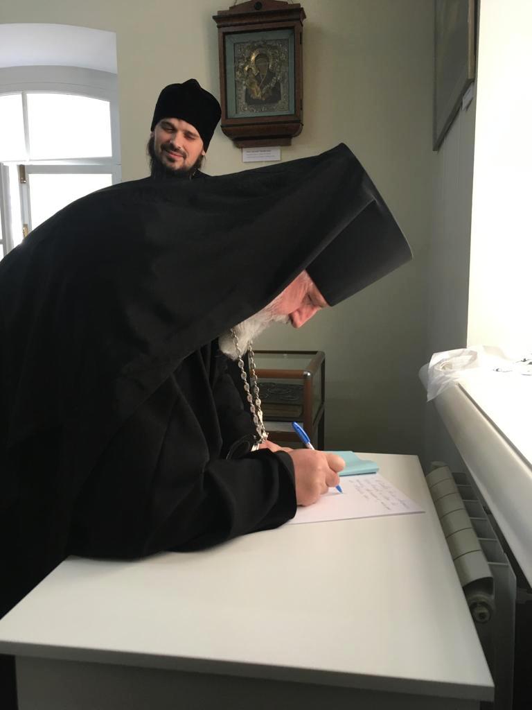 По завершении своего слова Архипастырь подарил музею Библию и Православный Календарь, а так же вместе с гостями осмотрел экспозицию состоящую из старинных книг и предметов искусства.