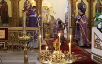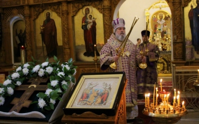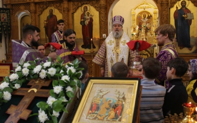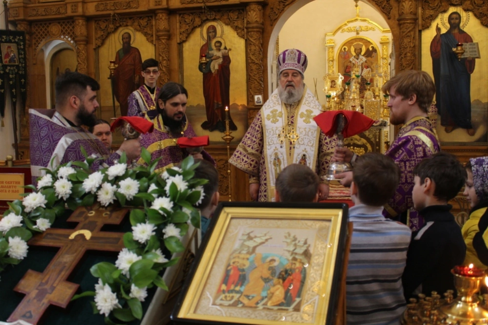 В завершении богослужения епископ Сергий обратился к прихожанам с Архипастырским словом на тему Евангельского чтения, после чего Архипастырь поздравил духовенство и всех участников богослужения с Крестопоклонной Неделей, и призвал на всех Божие благословение.