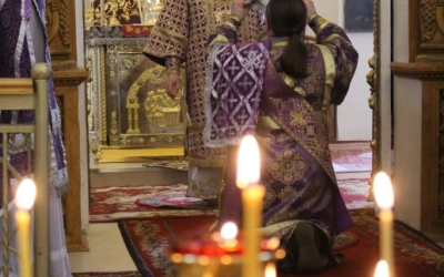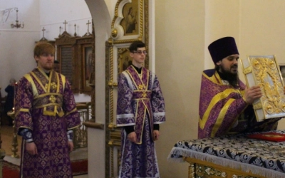 По отпусте Божественной литургии было совершено поклонение Кресту Господню.