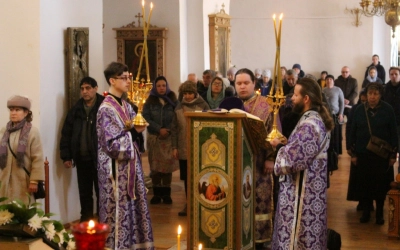 Богослужебные песнопения исполнил хор Свято-Троицкого собора-регент Елена Платонова.