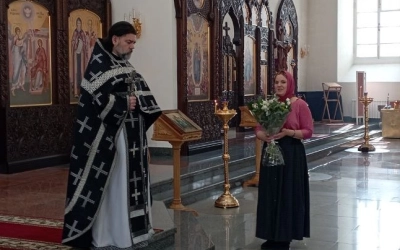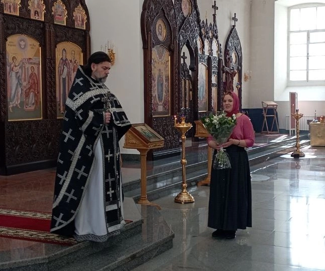 После этого прихожане собора поздравили игумена Александра с Днем Рождения, со словами благодарности за непростое и важное духовное служение и пожеланиями терпения и долголетия, а также и вручили батюшке букет цветов.