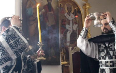 Диаконский чин возглавил клирик собора - диакон Евгений Ткач.
