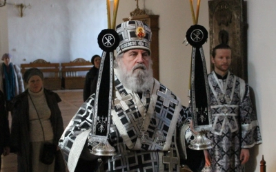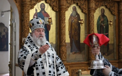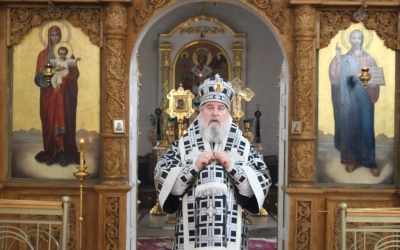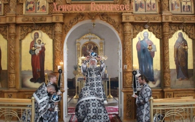 По окончании литургии, правящий Архиерей обратился к присутствующим с архипастырским словом, после чего призвал на всех Божие благословение.