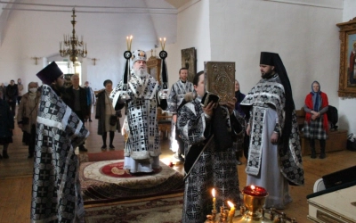 Богослужебные песнопения исполнил соборный хор, регент - Татьяна Курмелёва.