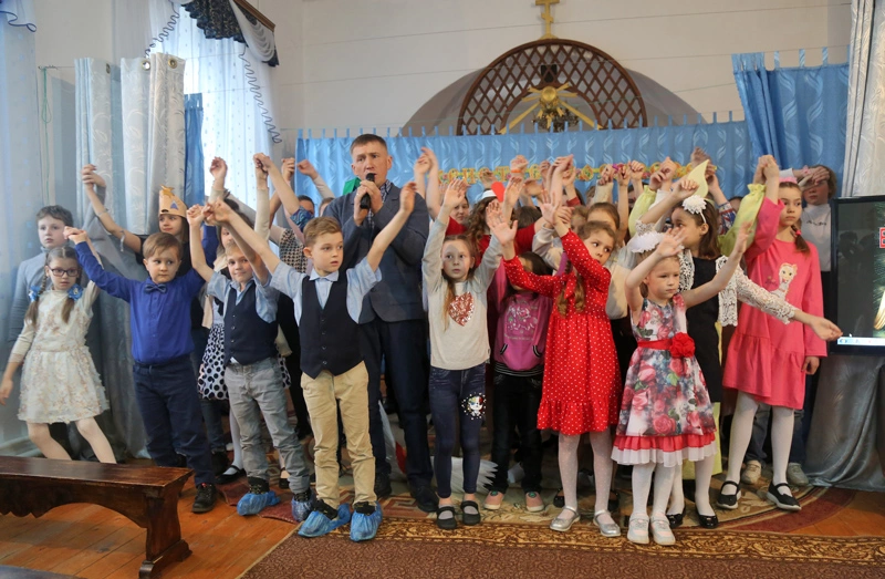 24 апреля 2022 года в День Пасхи в воскресной школе при Введенской церкви г. Вязьмы состоялся праздничный концерт для прихожан и родителей воспитанников.