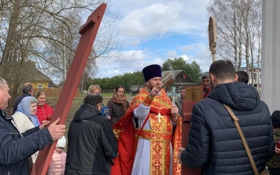 Настоятель Иверского храма д. Устье Сычёвкого района священник Алексий совершил Божественную Литургию в среду Светлой седмицы.