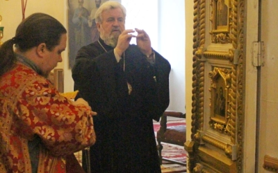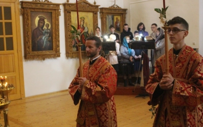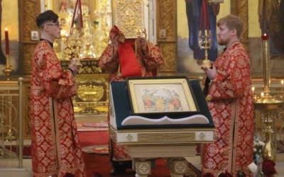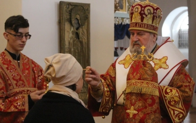 Богослужебные песнопения исполнил хор Свято-Троицкого собора - регент Елена Платонова.