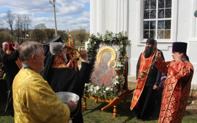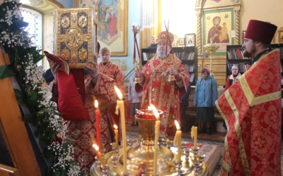 По окончании богослужения правящий Архиерей обратился к прихожанам храма с Архипастырским словом, после чего духовенство и верующие совершили Крестный ход с чудотворным образом иконы Божией матери Иверской в церковь Рождества Христова.