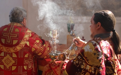 Богослужебные песнопения исполнил хор храма, Елизавета Гусева.