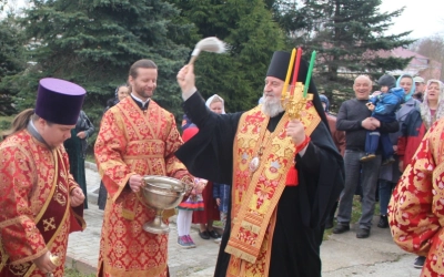 По окончании Литургии был совершен Пасхальный Крестный ход, после чего владыка Сергий обратился к присутствующим в храме с Архипастырским словом, и призвал на всех Божие благословение.