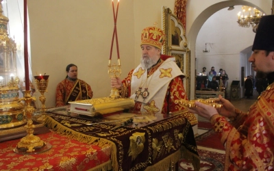 По заамвонной молитве была совершена панихида, после которой преосвященнейший Сергий обратился к прихожанам собора с архипастырским словом, в котором обратил особое внимание на необходимость молитвы за умерших.