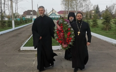 Так же в этот день духовенством Архиерейского подворья Благовещенского собора города Гагарин на Первое и Второе Братские захоронения были возложены цветы и венки от Вяземской епархии и Гагаринского благочиния