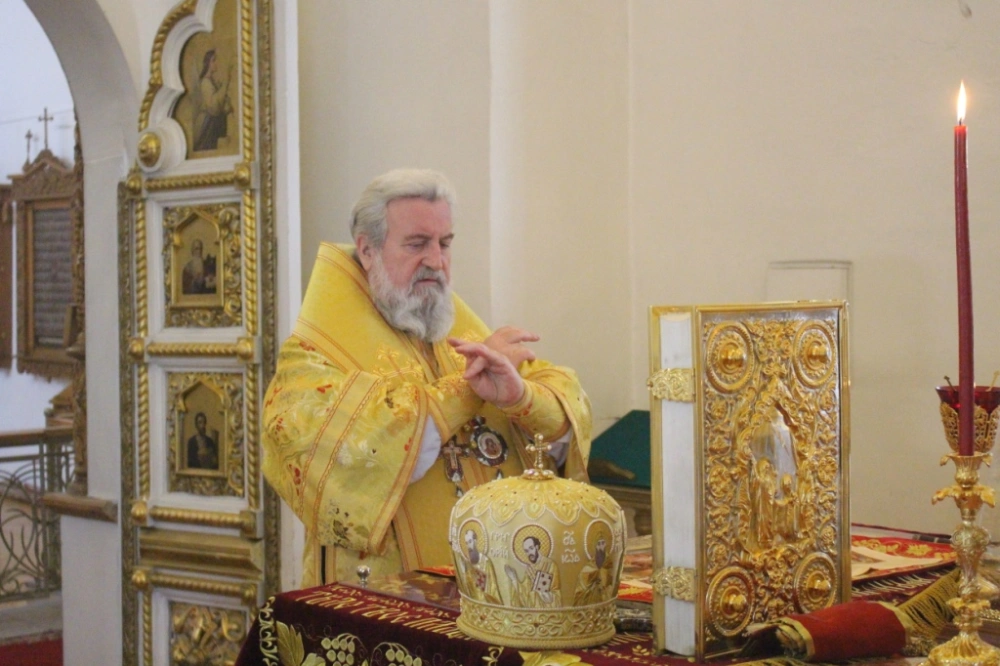 На сугубой ектении были возглашены прошения о Преосвященном епископе Сергии, а настоятель собора прочитал благодарственную молитву.