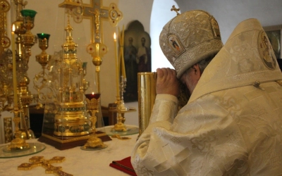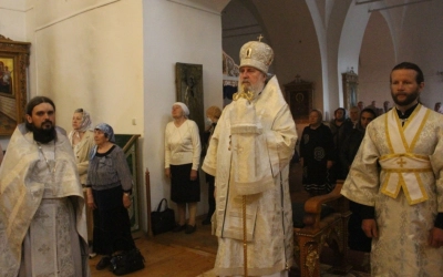 После сугубой ектиньи преосвященнейший владыка вознес молитву о мире.