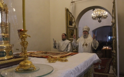 По отпусте Божественной литургии Архипастырь совместно с духовенством кафедрального собора совершили панихиду о всех усопших православных христианах.