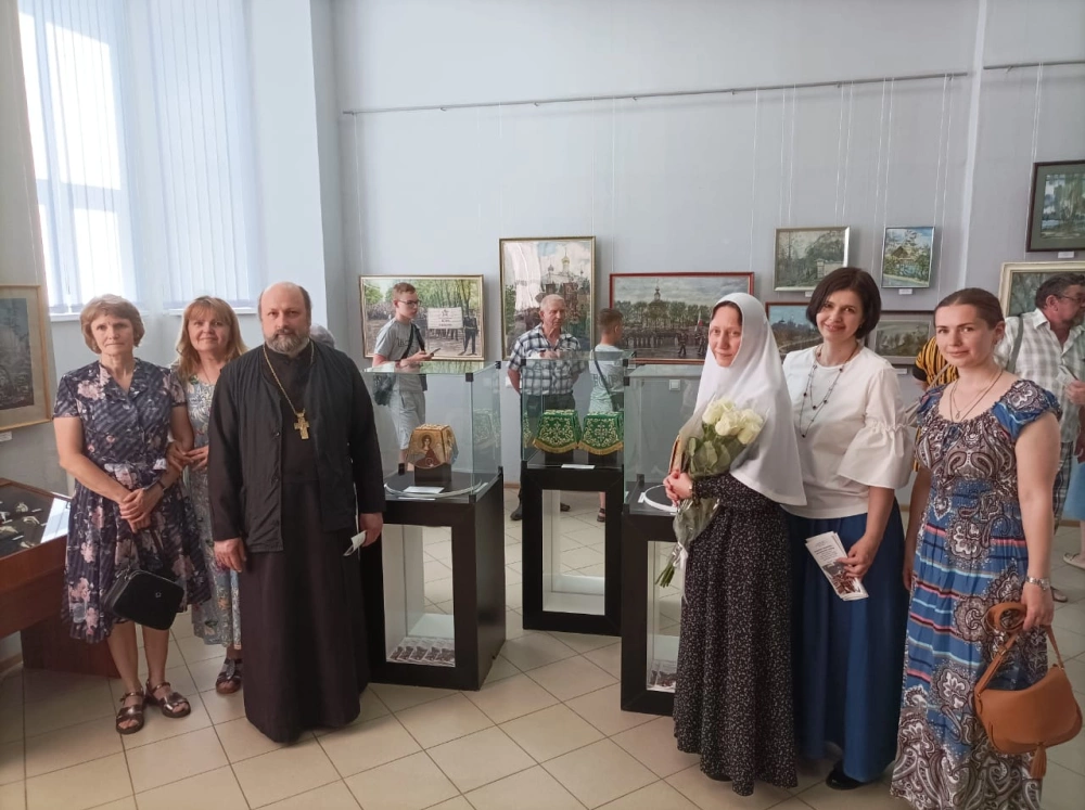 На выставке представлены работы мастериц 4-го года обучения.: Анастасии Воловик, Елены Таратуловой, Елены Павловой, Марины Мартыненковой, Анны Пестовой, Ирины Урмановой, Ирины Волковой, Анны Павловой, руководитель ин. Агния (Цепко). Покровцы, Воздух и Плащаница выполнены в технике лицевого и золотного шитья с использованием шëлковых и золотных нитей, натуральных и искусственных камней.
