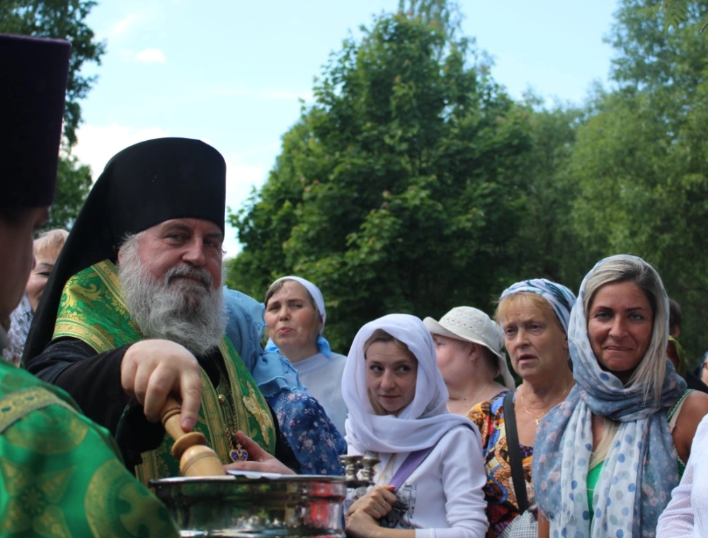 По окончании Литургии архипастырь с духовенством и молящимися прошли Крестным ходом к часовне на источнике Святого пророка Божия Илии, где был совершен водосвятный молебен.