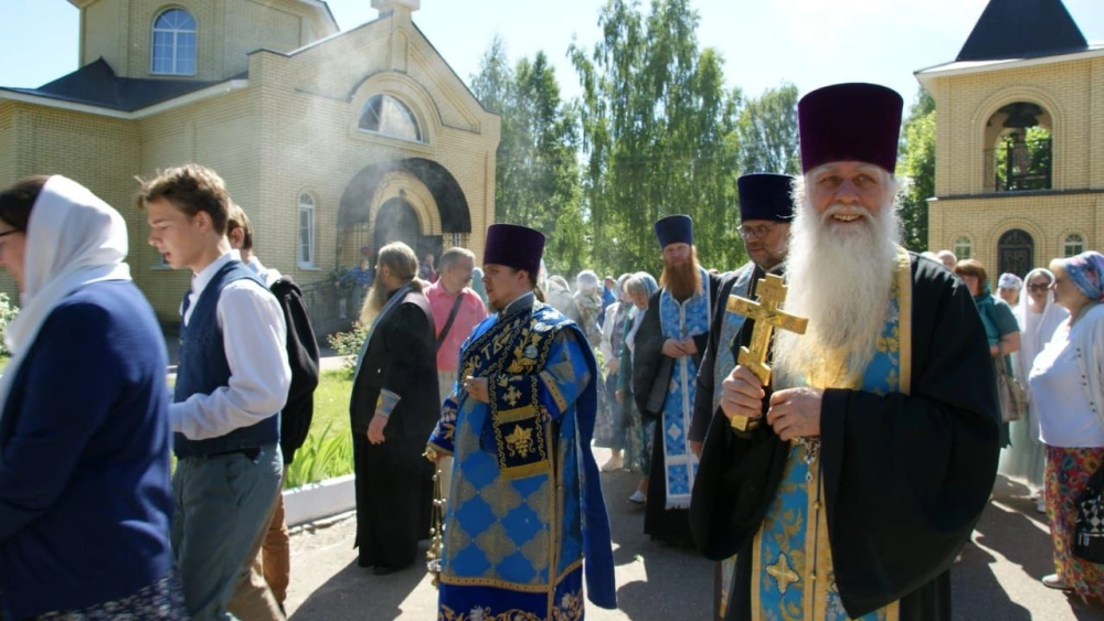 Продолжилось празднование торжественным Крестным ходом вокруг храма, по улицам поселка с особо чтимым образом Богородицы и с молитвенными прошениями.