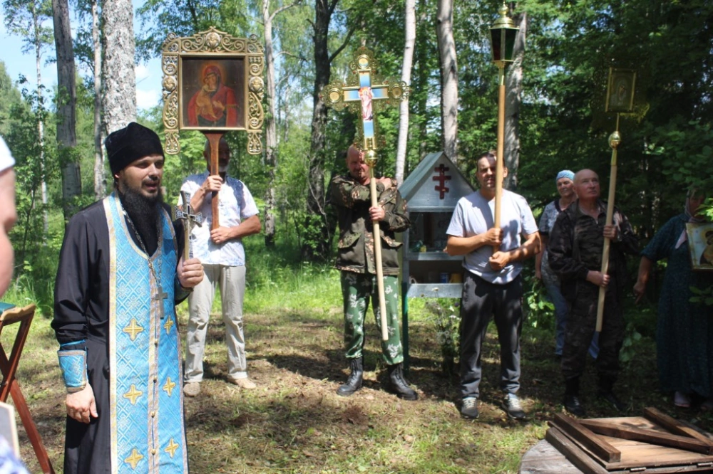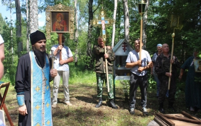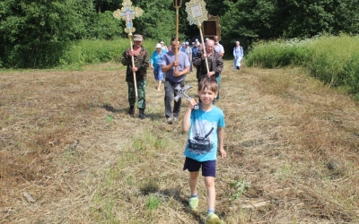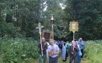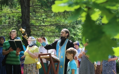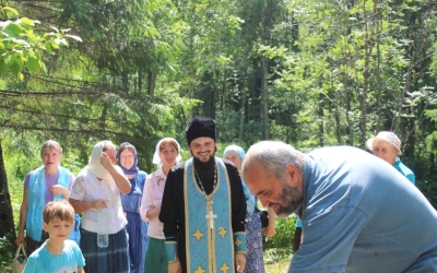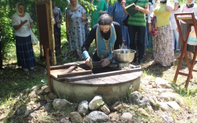 У источника участники Крестного хода, отслужили праздничный водосвятный молебен, послушали об истории праздника и об истории возникновения источника. По окончанию молебна, отец Александр поздравил всех с праздником, окропив святой водой, пожелал помощи Божией. Набрав в специально принесённые ёмкости освященной воды, и ощутив на себе Божию благодать, все отправились в обратный путь.