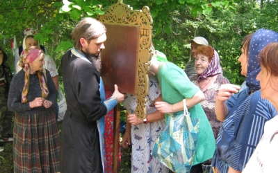 С собой на Святой источник паломники привезли чудотворную икону Владимирской Божией Матери, которая хранится в Свято-Троицком кафедральном соборе города Вязьма. По благословлению отца Александра, все присутствующие смогли к ней приложиться и попросить о помощи.