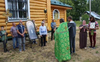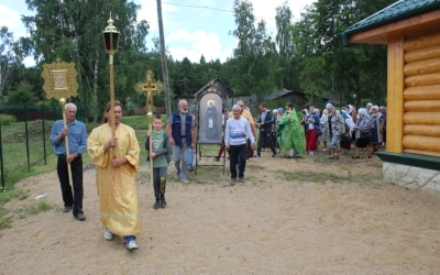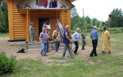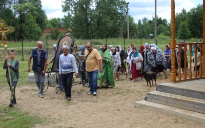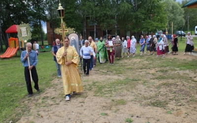 По окончании Божественной литургии состоялся Крестный ход вокруг храма, с иконой Преподобного Сергия Радонежского.
