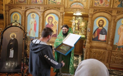 Отец Александр поздравил всех присутствующих с праздником. Рассказал о житие Преподобного Сергия Радонежского и о чудесах, которые происходят по молитве святому.