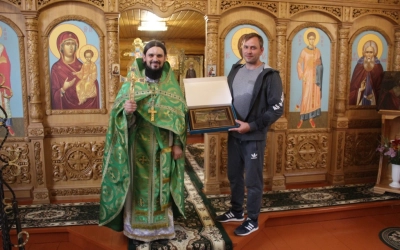 На литургии присутствовал ктитор Храма, Сергий Иванов, который в этот день отмечает день Ангела. Отец Александр поблагодарил Сергия, за его труды, за помощь в строительстве Храма, и на память вручил картину с видом Кафедрального собора.