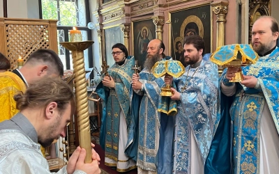 Праздничное богослужение возглавил наместник Свято-Владимирского мужского монастыря на истоке реки Днепр игумен Тимофей (Ближенский).