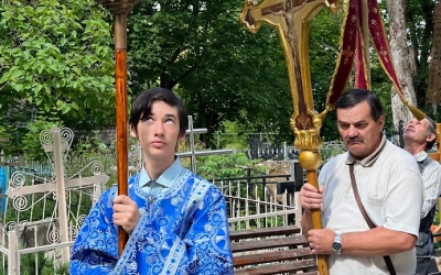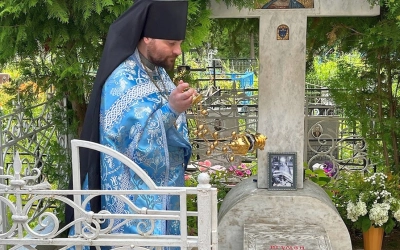 По заамвонной молитве был совершён Крестный ход, во время которого были вознесены молитвы о упокоении игумена Никона (Воробьева) и других почивших священнослужителей покоящихся за алтарем.
