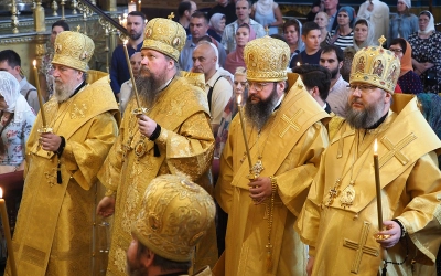 Всенощное бдение возглавили митрополит Воскресенский Дионисий, управляющий делами Московской Патриархии, митрополит Смоленский и Дорогобужский Исидор, епископ Вяземский и Гагаринский Сергий, епископ Рославльский и Десногорский Мелетий.