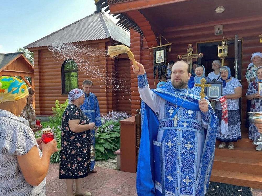 В завершение богослужения состоялся Крестный ход и славление Пресвятой Борогодицы, было совершено поклонение чтимому образу, после чего отец настоятель обратился к собравшимся со словом поучения.