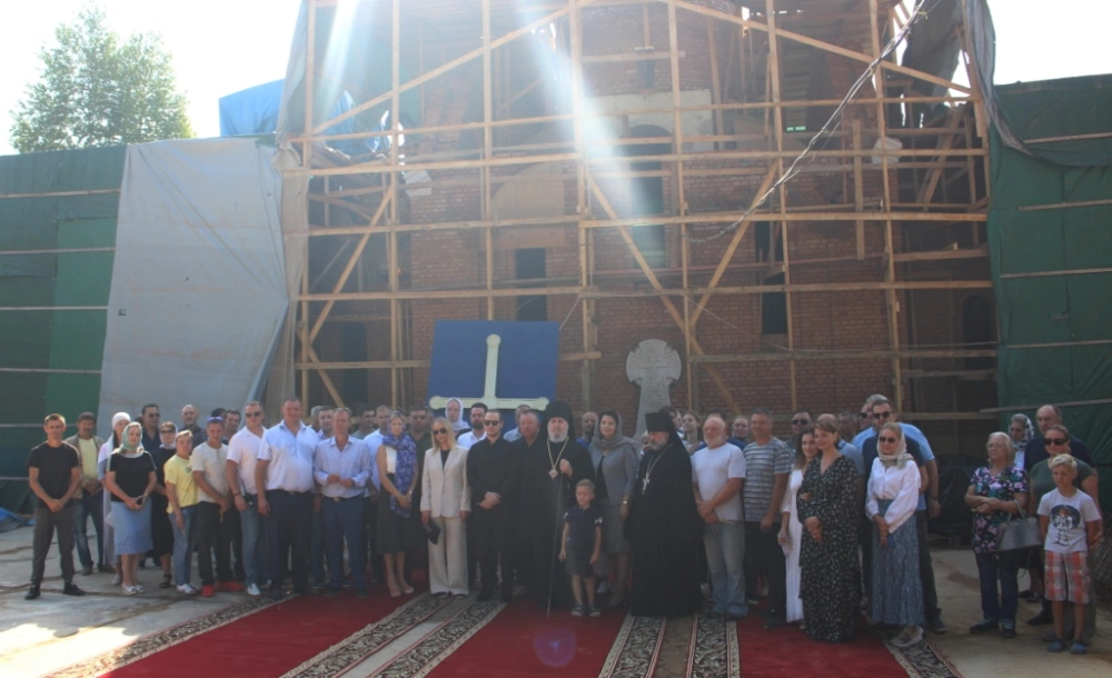 В этот же день, крест был водружен на купол храма.