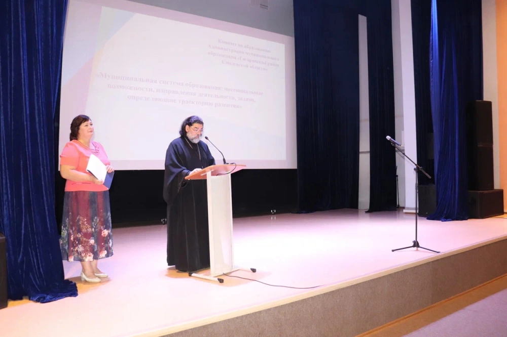 «Досточтимые коллеги! Сердечно благодарю за приглашение – принять участие в августовском совещании педагогических работников и возможность - преподать благословение нашего архипастыря, Владыки Сергия.
