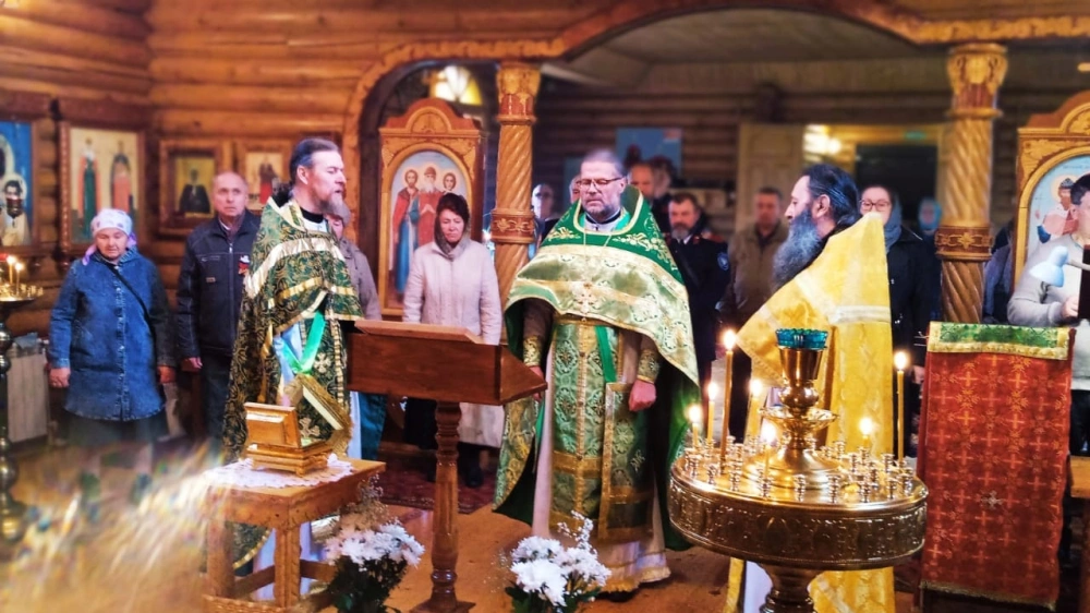 Несмотря на понедельник, храм наполнил я молящимися. Богослужение возглавил багочинный Вяземского благочиния протоиерей Валерии Калинин, кот орому сослужили клирики храма иерей Владимир Иванов и иеромонах Алексей Янковой.