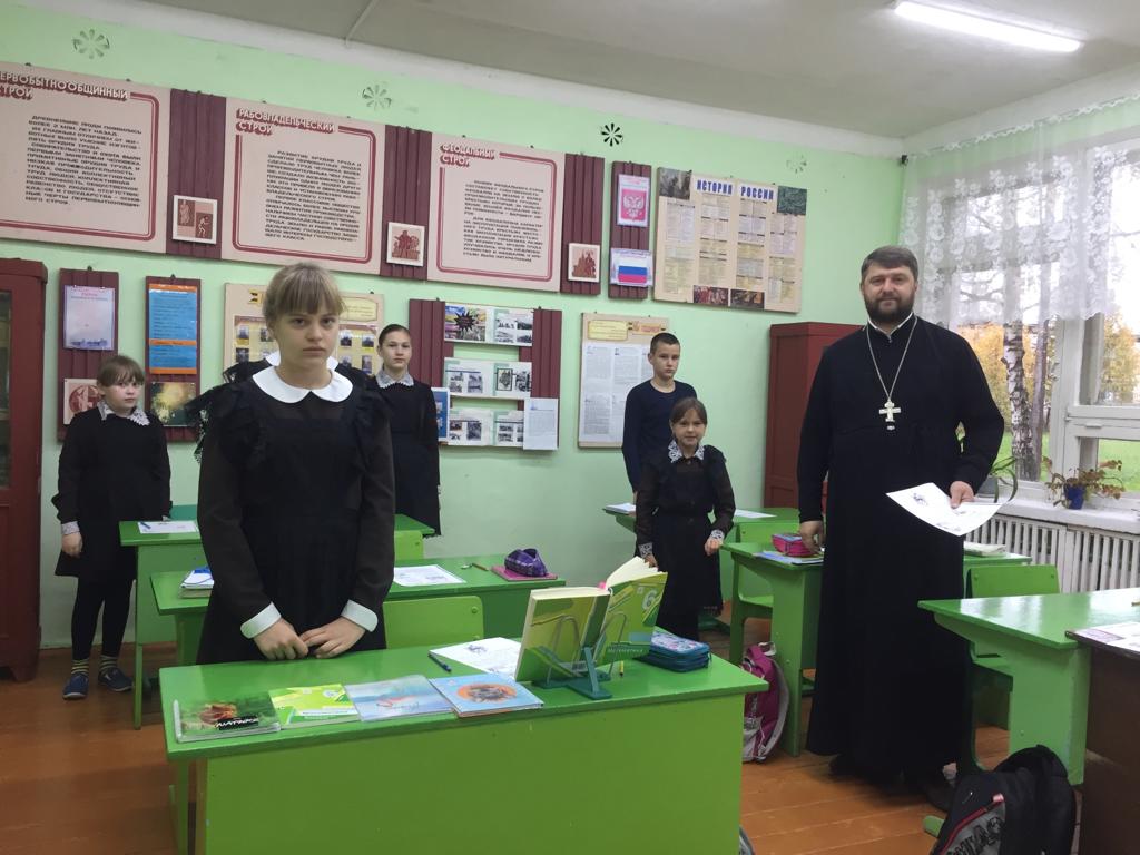 Настоятель храма прп. Серафима Саровского на улице Юбилейной проводит встречи с учащимися СОШ №7, №8 города Вязьма, а также на регулярной основе проводит открытые уроки в школах д.Субботники и д. Елманово Сычёвского района.