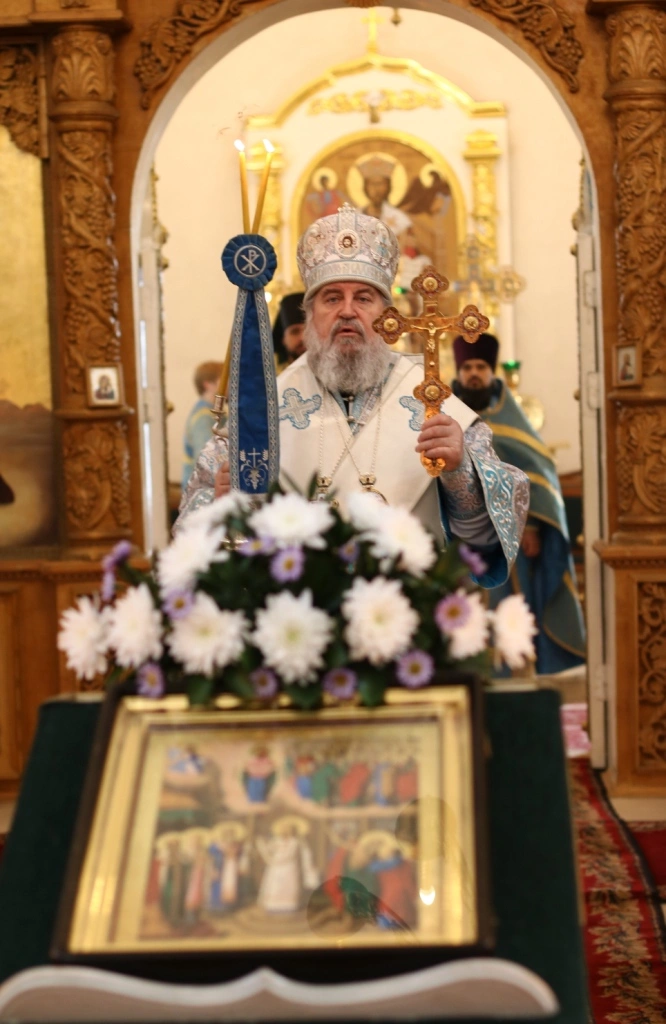По окончании Божественной литургии было совершено славление перед иконой Покрова Божией Матери.