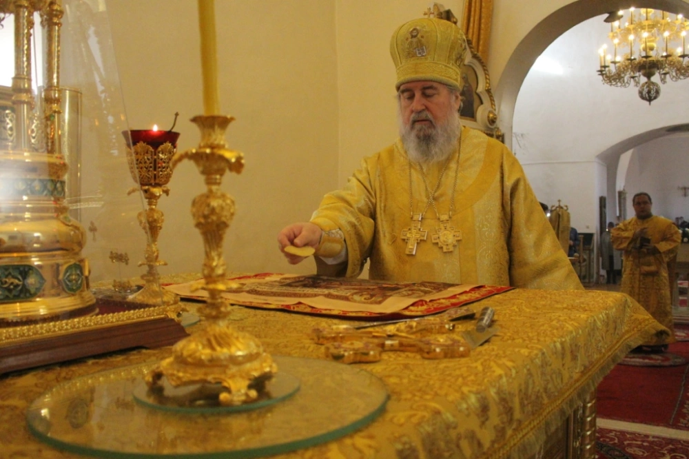 За богослужением, после сугубой ектинии владыка Сергий вознес молитву о мире.