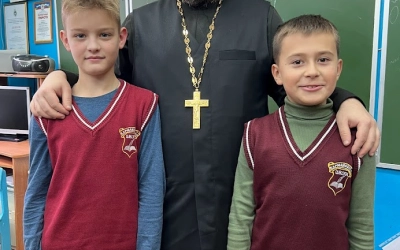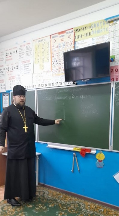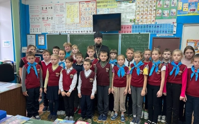 В ходе обсуждаемой темы беседы с учениками «Христос и Его Крест» отец настоятель рассказал о то что Крест — это символ победы Христа над смертью. Отец Андрей поведал о важности и необходимости смерти Спасителя, о радости Его Воскресения и о том, как каждый христианин готовит себя к встрече Воскресшего Спасителя. Окончилась встреча ответами священника на вопросы учеников.