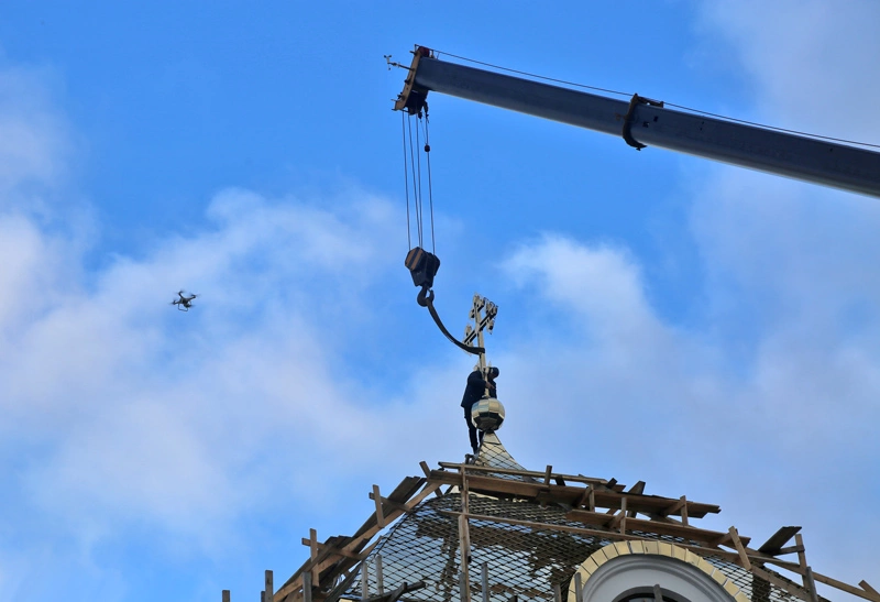 Водружение освящённого Креста на центральный купол Спасо-Аркадиевского храма возрождаемого Аркадиевского монастыря.