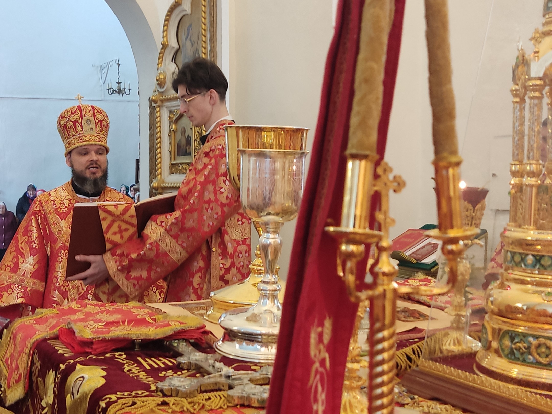 14 апреля 2026 года, во Вторник Светлой седмицы, день празднования Иверской иконы Божией Матери, епископ Вяземский и Гагаринский Алексий возглавил праздничную Божественную литургию в Свято-Троицком кафедральном соборе г. Вязьмы.
