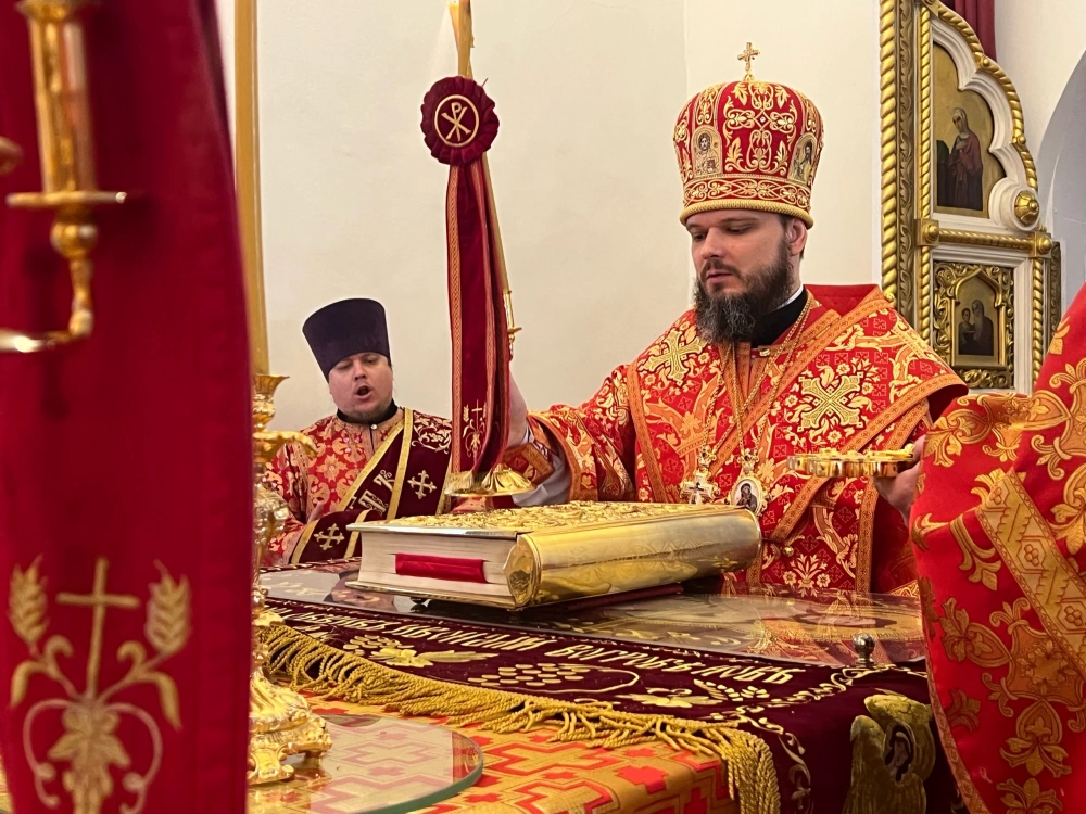 Его Преосвященству сослужило духовенство кафедрального храма.