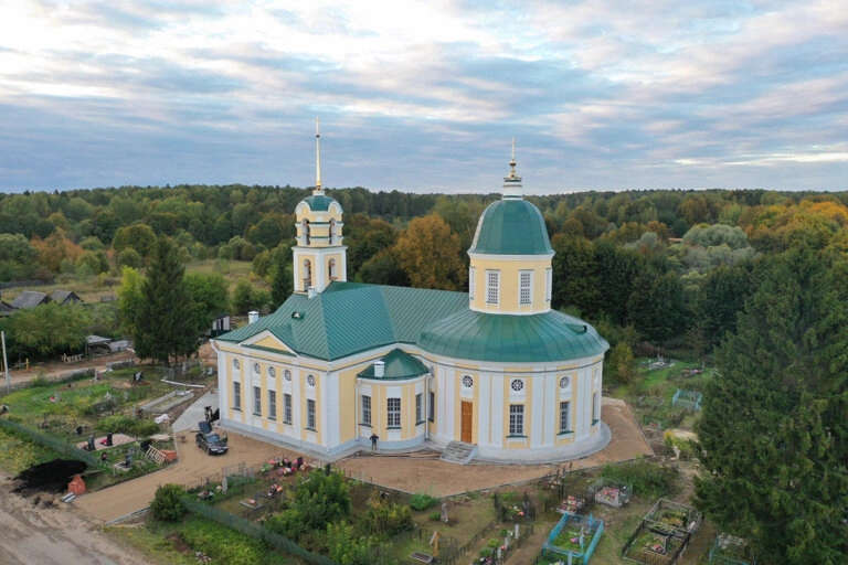 Храм Архангела Михаила в деревне Кикино был построен в 1797 году на средства купца Нечаева и имеет четыре предела: основной Архангела Михаила, предел Покрова Богородицы, предел Святителя Алексия Московского и южный предел Святителя Николая Чудотворца. Храм начиная с 1953 года был закрыт для богослужений и использовался в начале как мастерская для сельхозтехники, а потом под склад удобрений. Реставрация храма велась с августа 2020 года и закончилась в сентябре 2022 года. Для храма уже заказан иконостас и прочая церковная утварь. Освящение запланировано на следующий год. Во время запустения храм находился долгое время в аварийном состоянии, обвалился свод за полтора года до реставрации, сильно пострадали стены. Но благодаря божией воли храм удалось сохранить. Реставрационный работы выполняла смоленская фирма «Даргель», у которой большой опыт в этой сфере, и конечно же при финансировании отзывчивых меценатов.