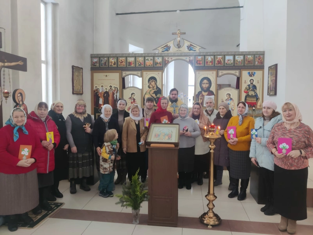Настоятель храма Успения Пресвятой Богородицы с .Пречистое Гагаринского Благочиния Вяземской Епархии РПЦ (МП) отец Сергий Романов поздравил прихожанок с этим чистым и светлым праздником. С благословения епископа Вяземского и Гагаринского Сергия , воспитанники детской воскресной группы подарили женщинам сделанные своими руками открытки, с пожеланиями благополучия, любви, счастья и Божией помощи